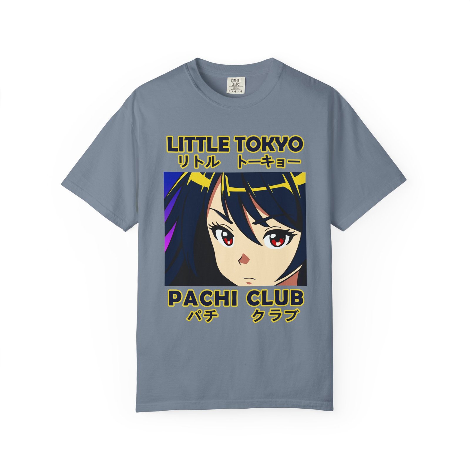 This relaxed-fit garment-dyed tee brings a slice of anime-inspired street style to everyday wear. The front features a bold, framed illustration of a stylized character with Japanese text accents, giving a retro neon-club vibe that reads like a poster from an imagined Little Tokyo arcade. The heavyweight, ring-spun cotton feels substantial yet soft thanks to the garment-dye process, and the tubular knit keeps the silhouette clean and comfortable. Wear it to late-night meetups, conventions, or just when you want your outfit to speak with graphic confidence.